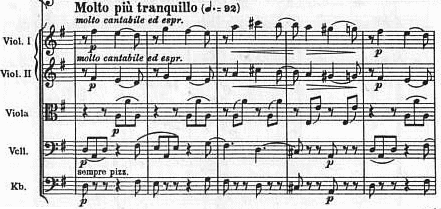第1楽章、提示部、弦による副次主題(170小節〜)