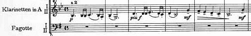 第1楽章、序奏部冒頭、クラリネット2本で奏される「運命動機」(1小節〜)