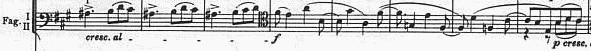 第3楽章、中間部に入る直前のファゴット・ソロ(56小節〜)