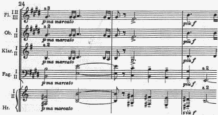 第4楽章、序奏部、主題の裏旋律を吹くホルン・パート(24節〜)