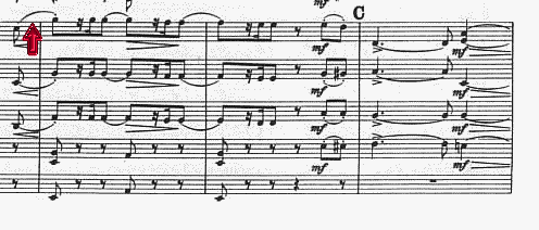 第1楽章、提示部、第1主題が弦で登場する箇所(58小節〜)