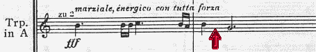 トランペットによる「運命動機」の4分音符の扱い(491小節)