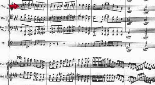 トランペットによる「運命動機」が2声になってからの扱い(499小節〜)